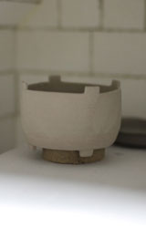 今日の仕事は菊形鉢の原型の修正です。大体形はきまってきました。微調整が続きます。絵付けは十草文飯碗の線描きです。呉須で高台脇から口元に向かって線を引いていきます。